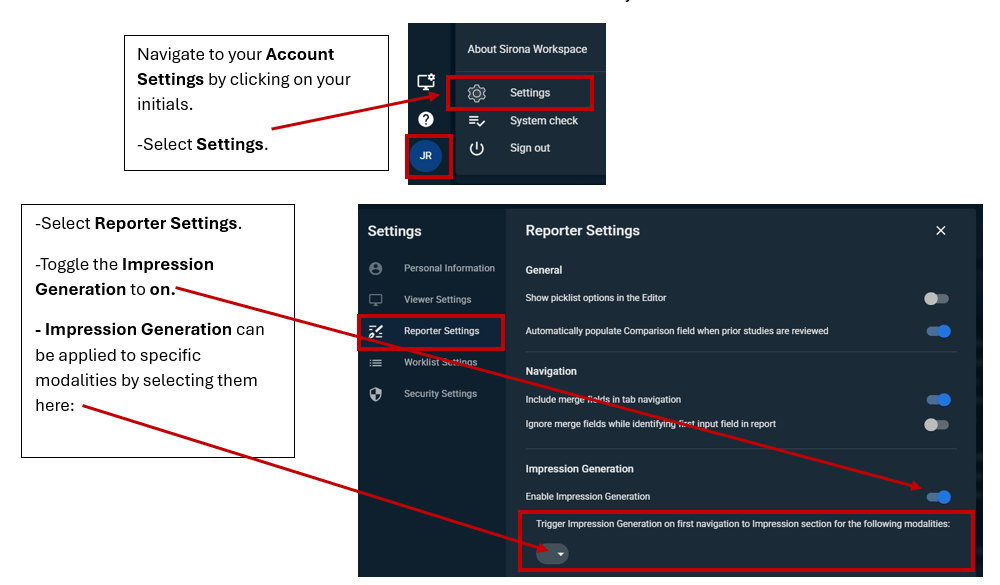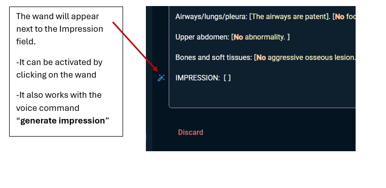 The Auto Impression Generation feature will first look for an H1 header in the ‘Impression’ section and if one does not exist it will look for an H2 header to place the text for the auto generated impression.